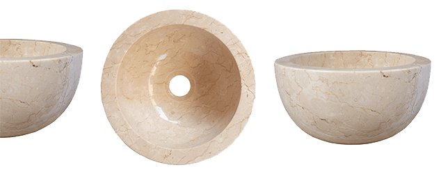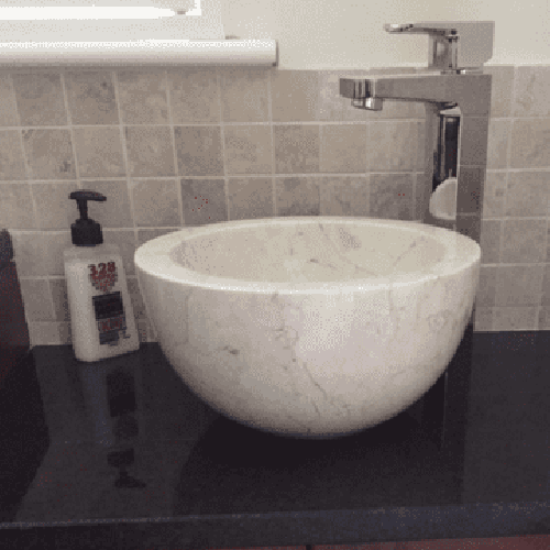 At a small White / Cream Washbasin handmade from a Polished White / Cream Marble.