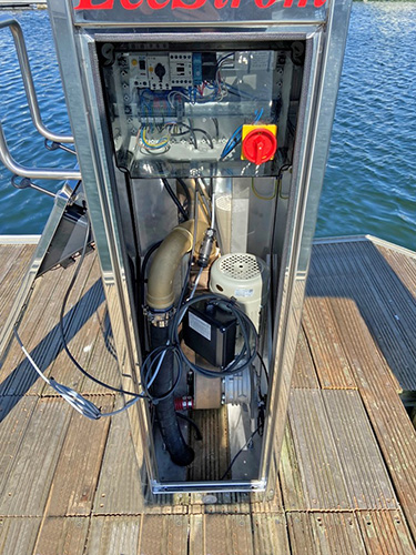 However, to ensure that the marina service is fully up-to-date, the old unit has now been removed and replaced with a new, updated, LS60W Pump Out Station. Internally this features a Rheinstrom Bronze 2” diaphragm pump and dual inlet and outlet valves.