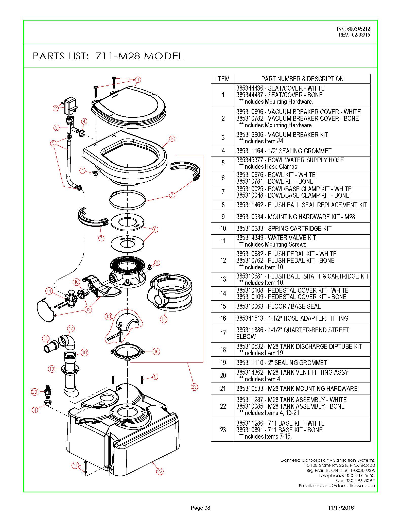 Sealand Dometic 711-M28 Gravity Toilet Spare Parts