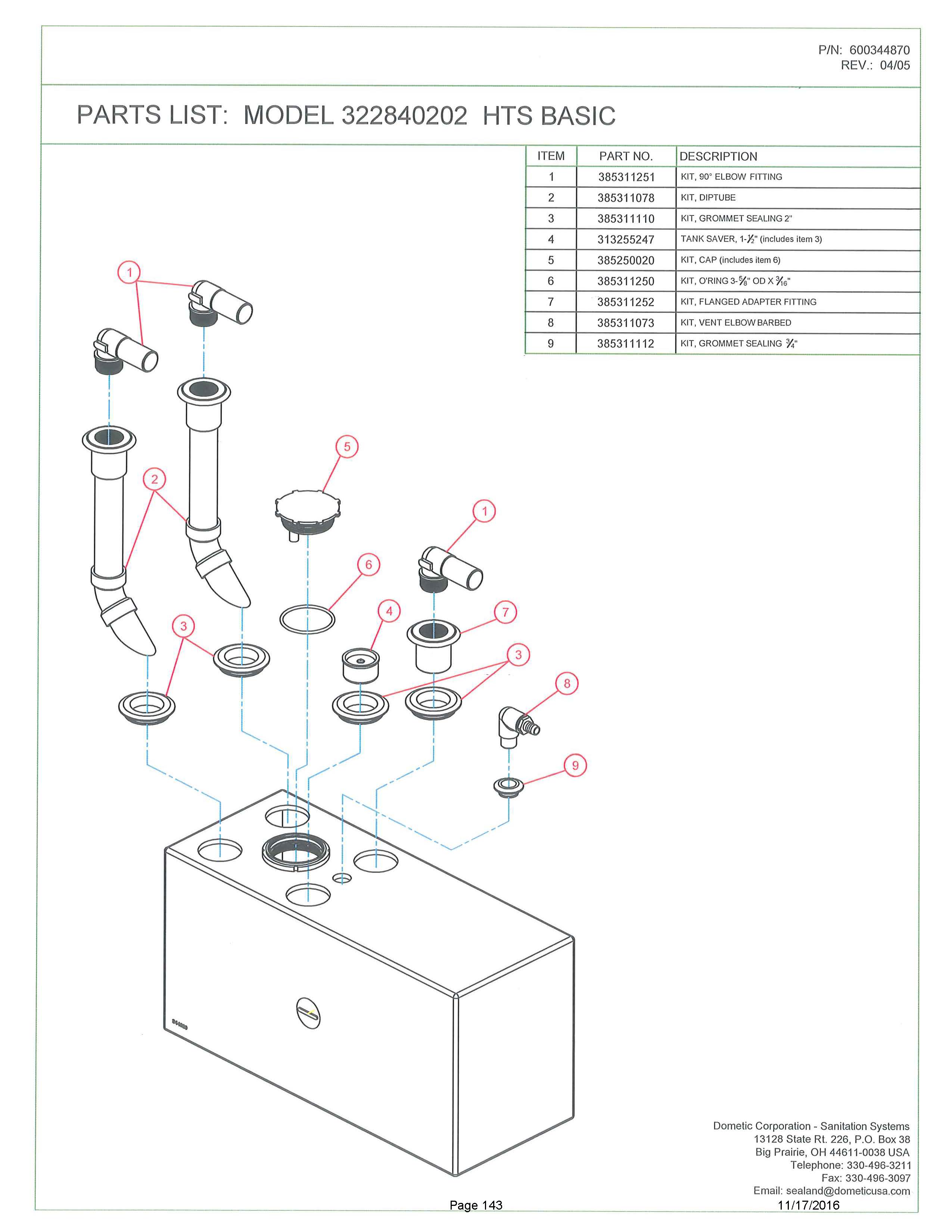 Sealand Dometic 20HTS-VRT Holding Tank Spare Parts