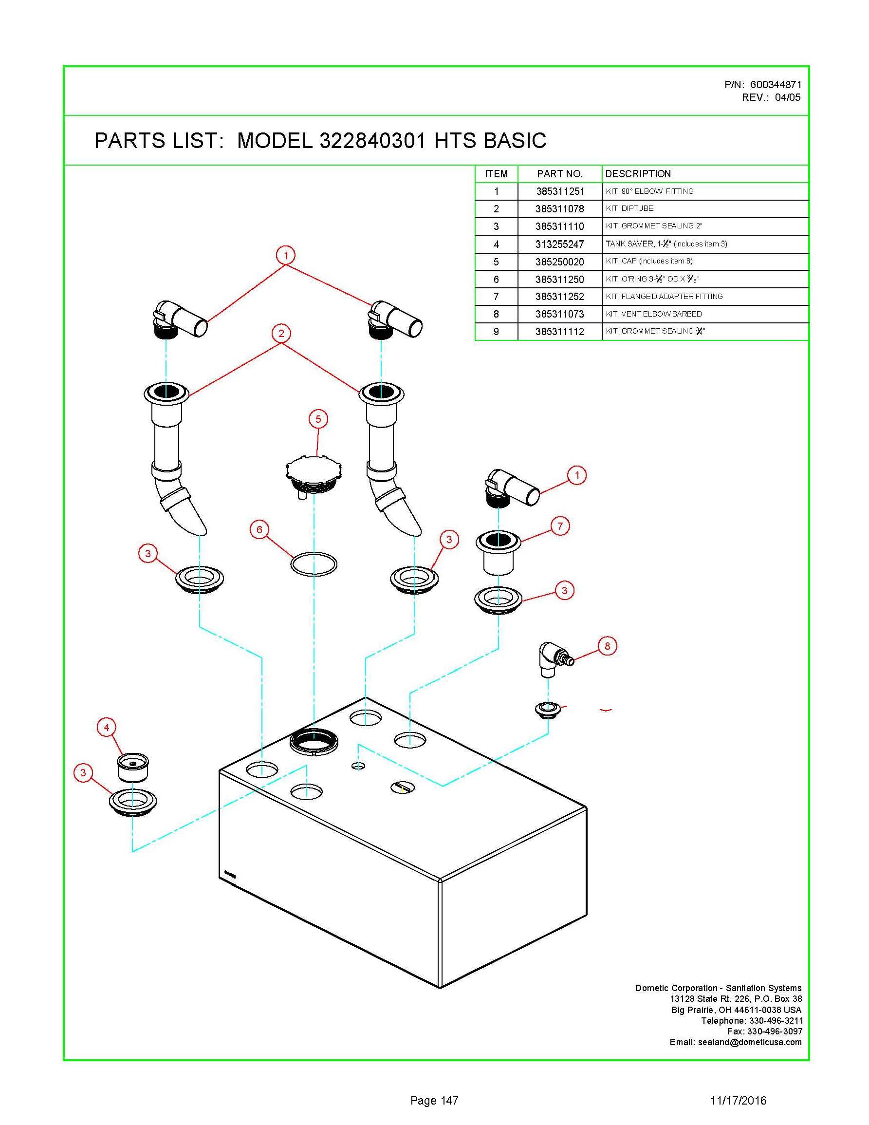 Sealand Dometic 30HTS-HRZ Holding Tank Spare Parts