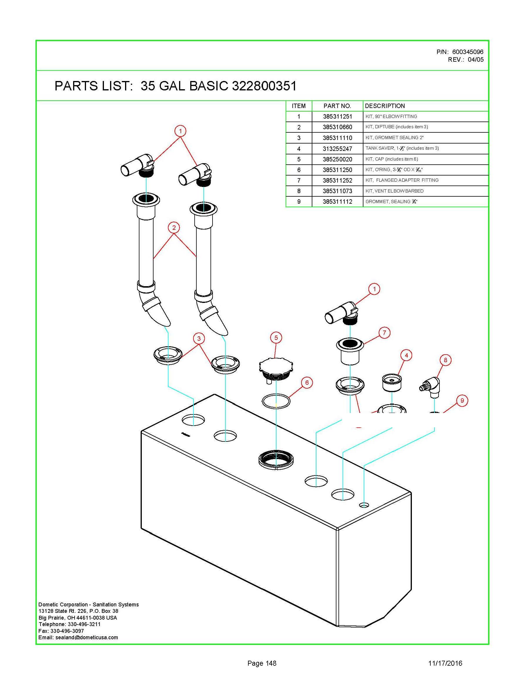Sealand Dometic 35HTS-HL Holding Tank Spare Parts