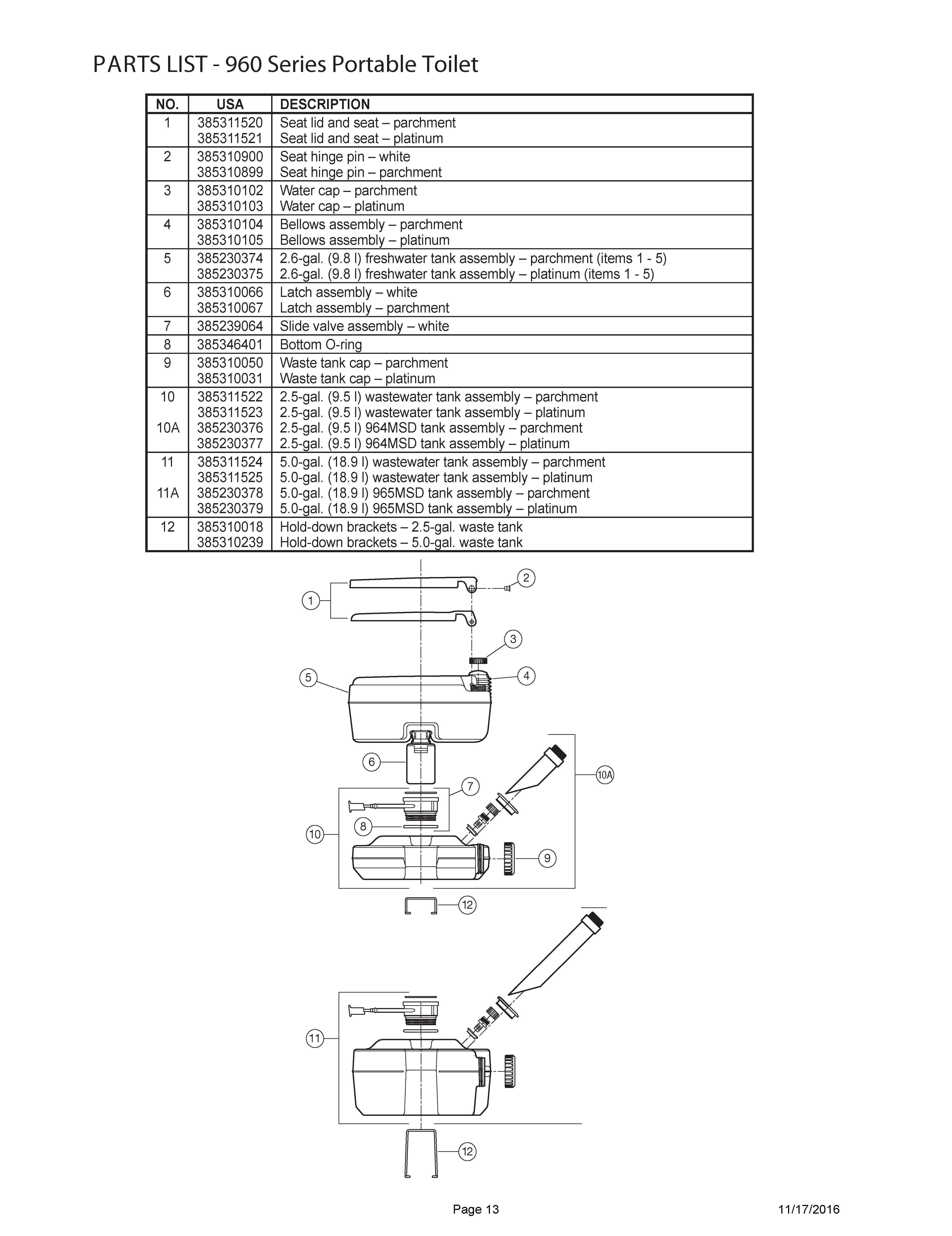 Sealand Dometic 966 Portable Toilet Spare Parts