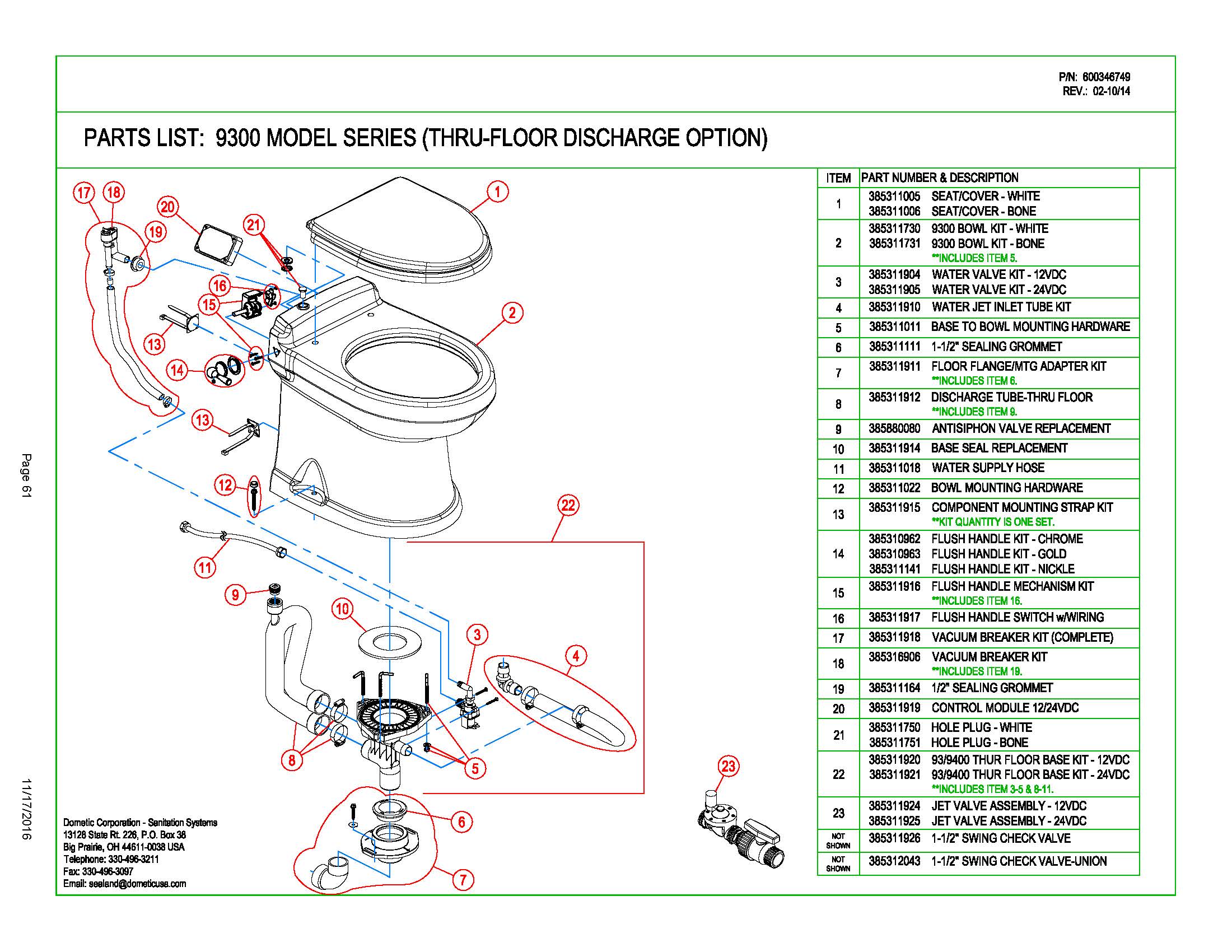 Sealand Dometic 9300 Rush Flush Thru Floor Toilet Spare Parts