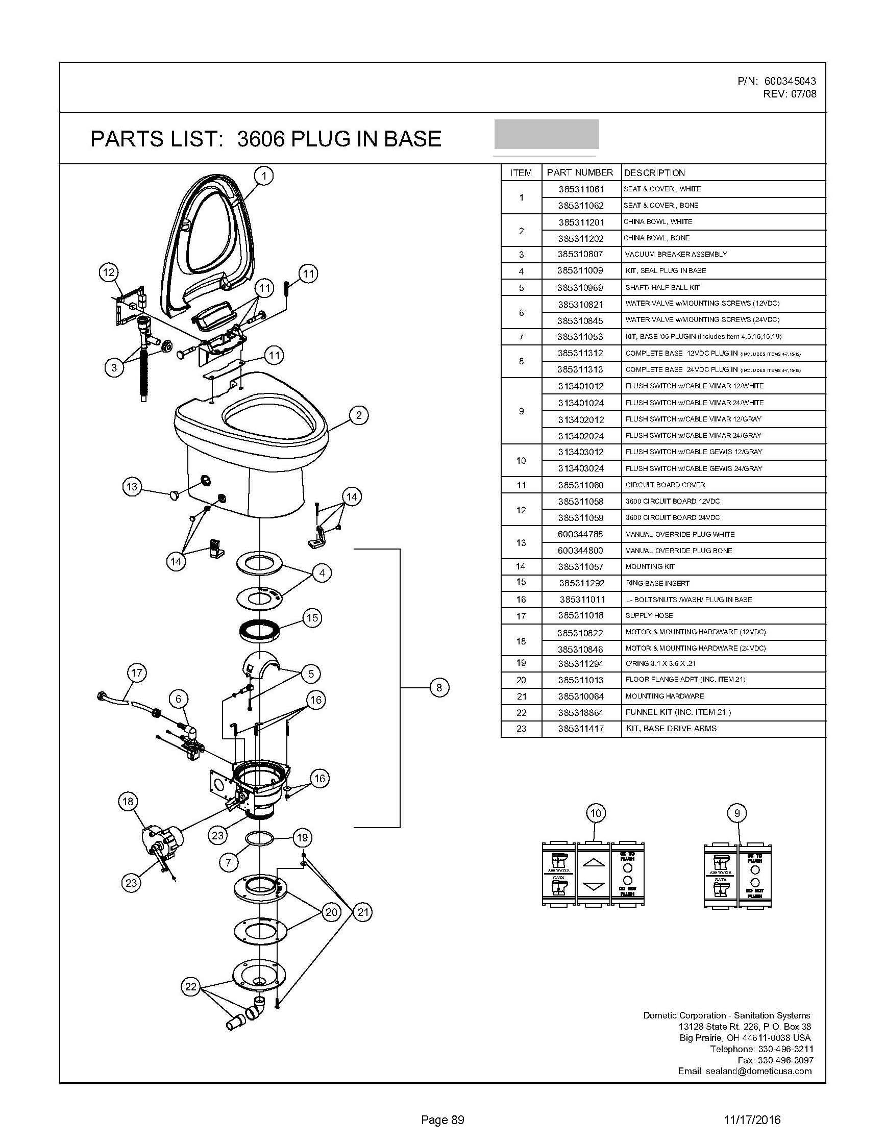 Sealand Dometic Magnum Opus 3606 Toilet Spare Parts