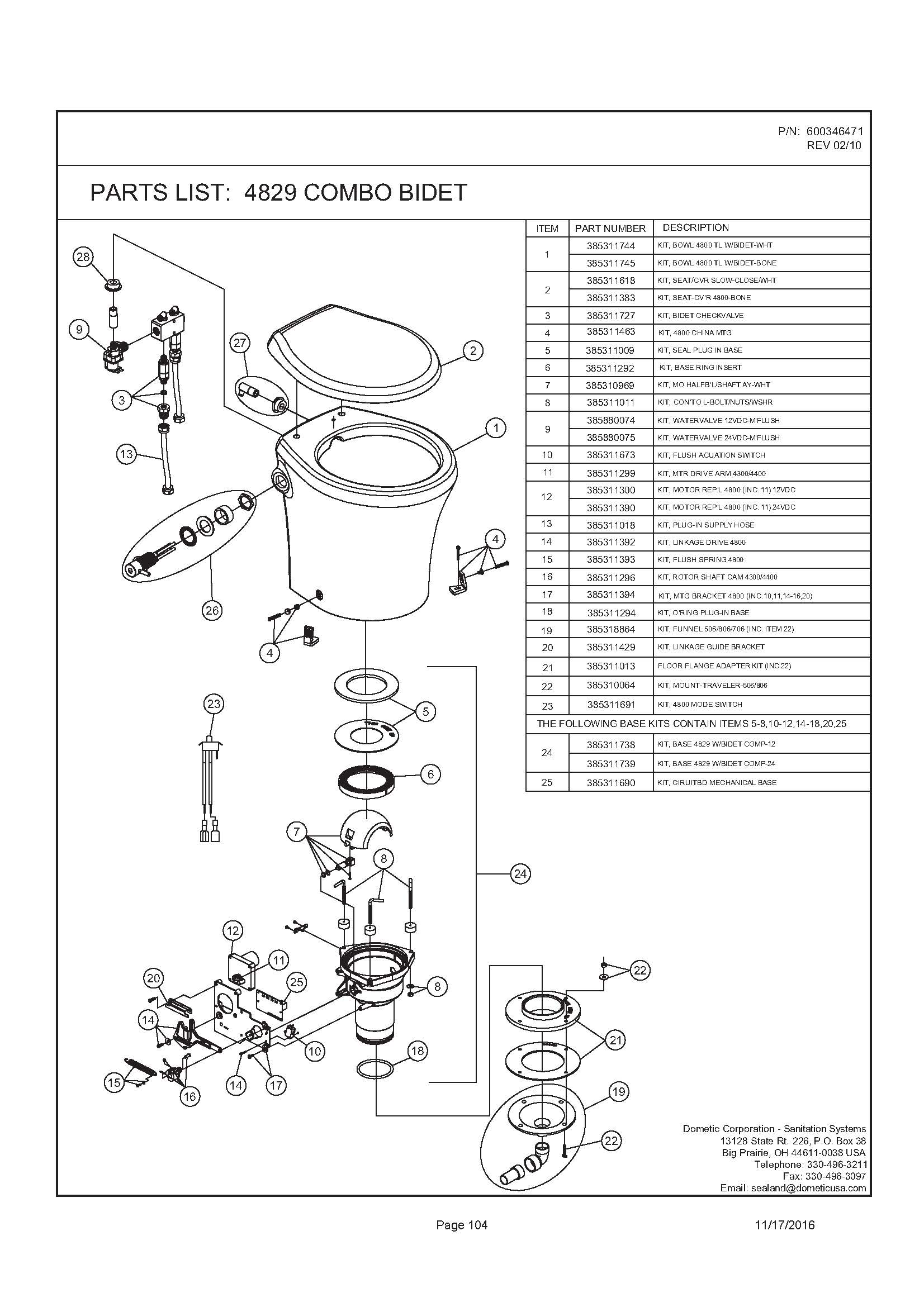 Sealand Dometic Vacuflush 4829 Toilet Spare Parts