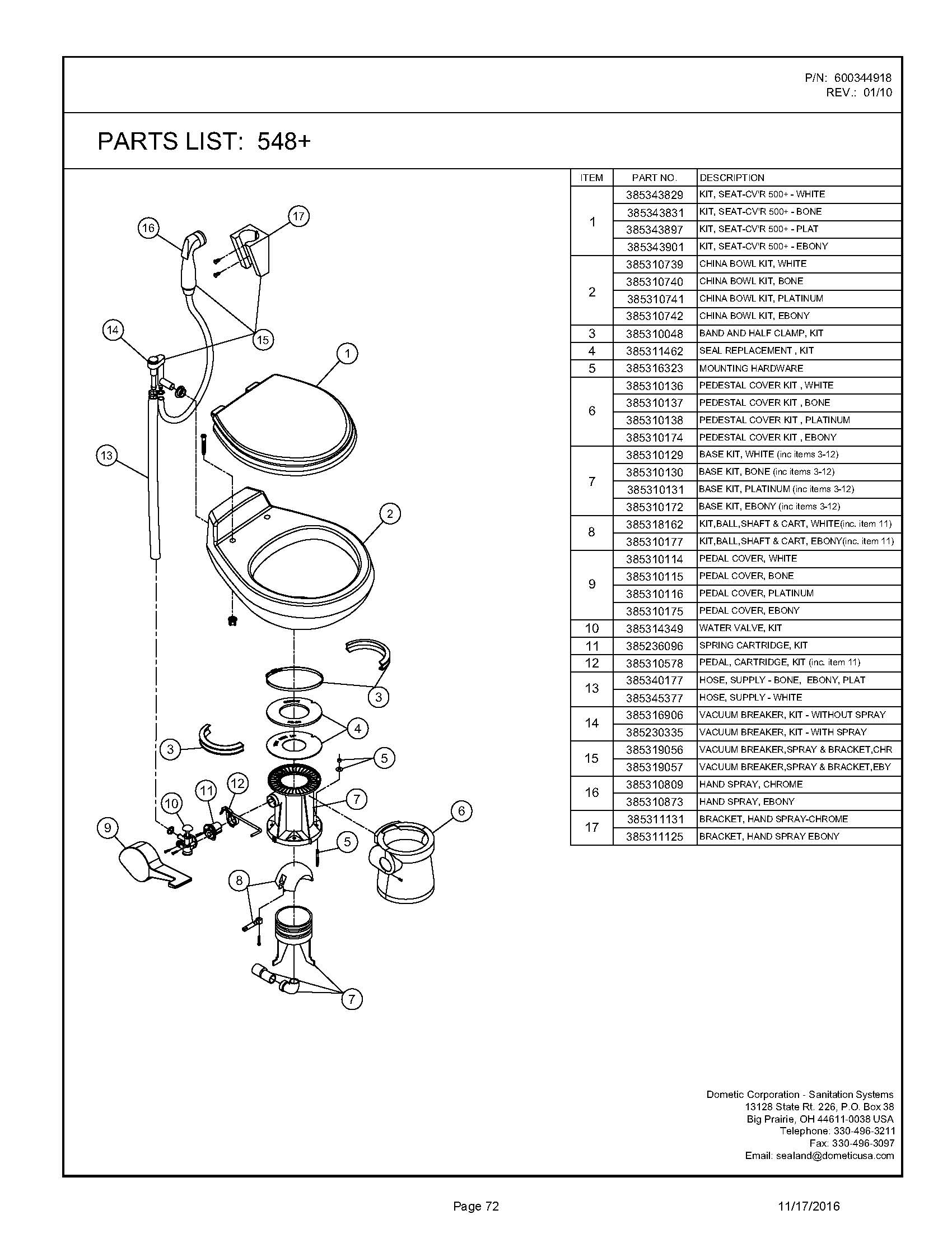 Sealand Dometic Vacuflush 548 Toilet Spare Parts