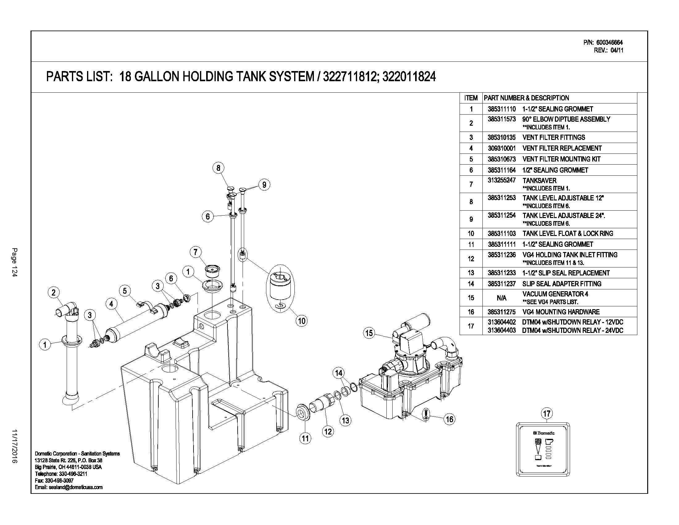 Sealand Dometic 18HTS-VG Vacuum Holding Tank Spare Parts