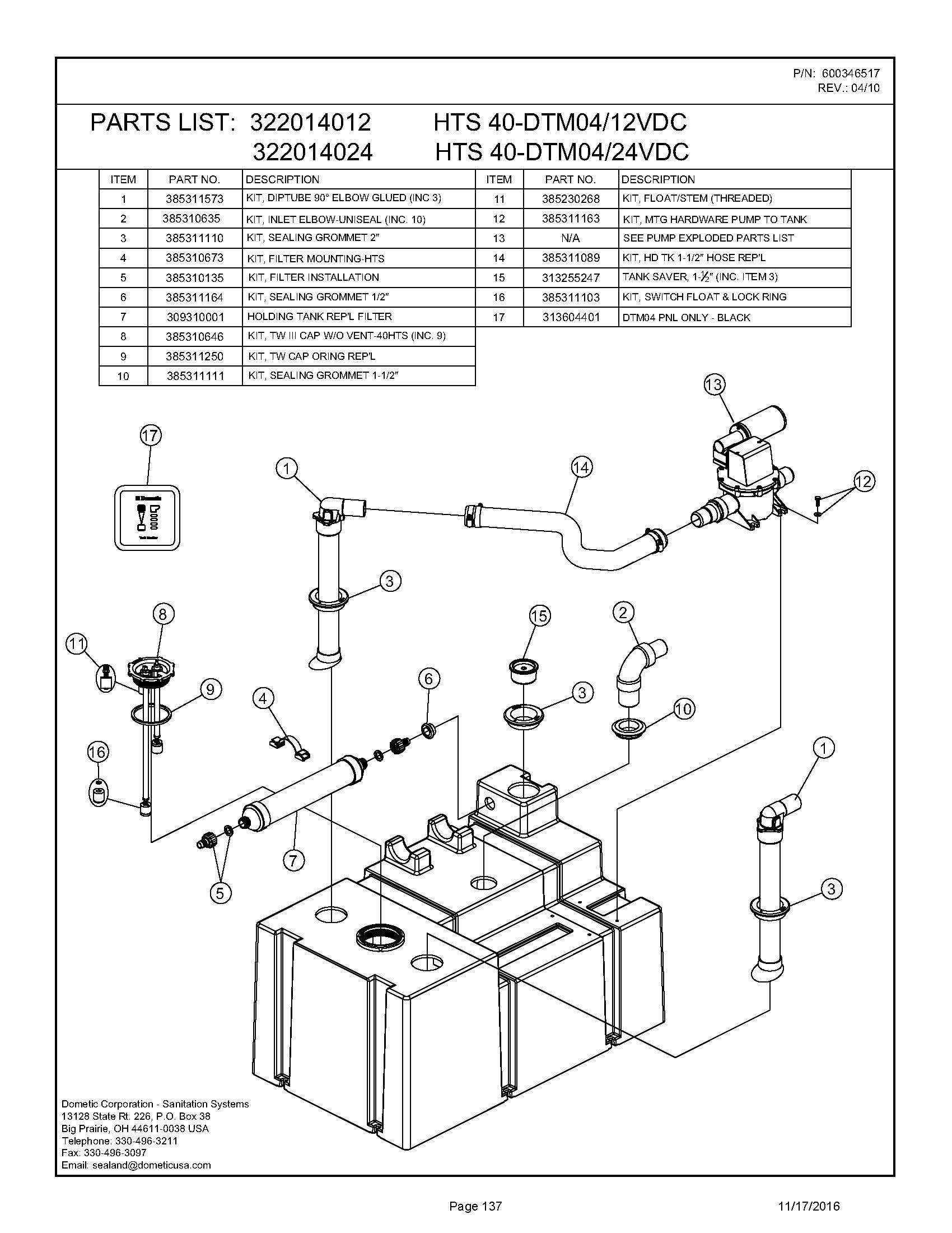 Sealand Dometic 40HTS-T Discharge Holding Tank Spare Parts