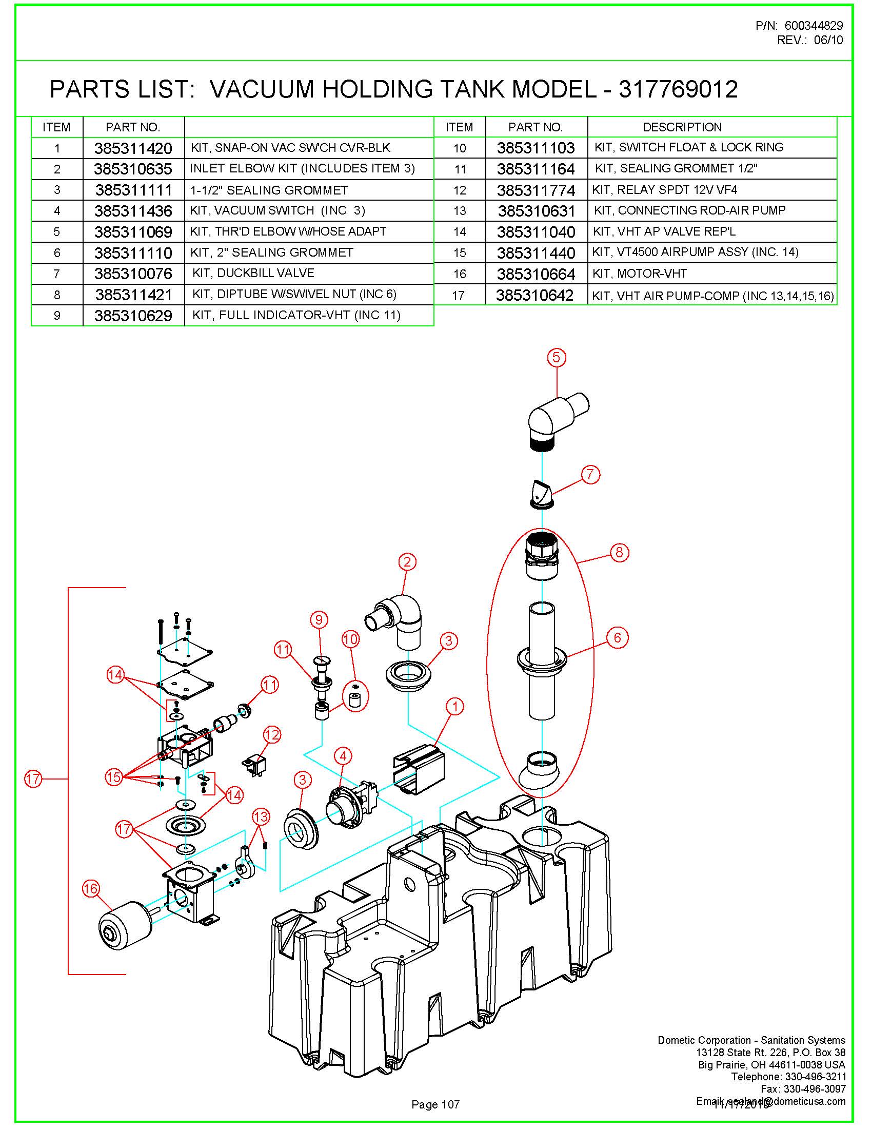 Sealand Dometic VHT12 Vacuum Holding Tank Spare Parts