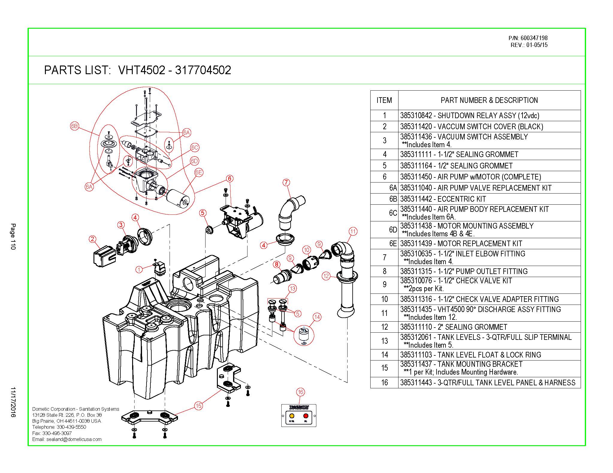 Sealand Dometic VHT4502 Vacuum Holding Tank Spare Parts